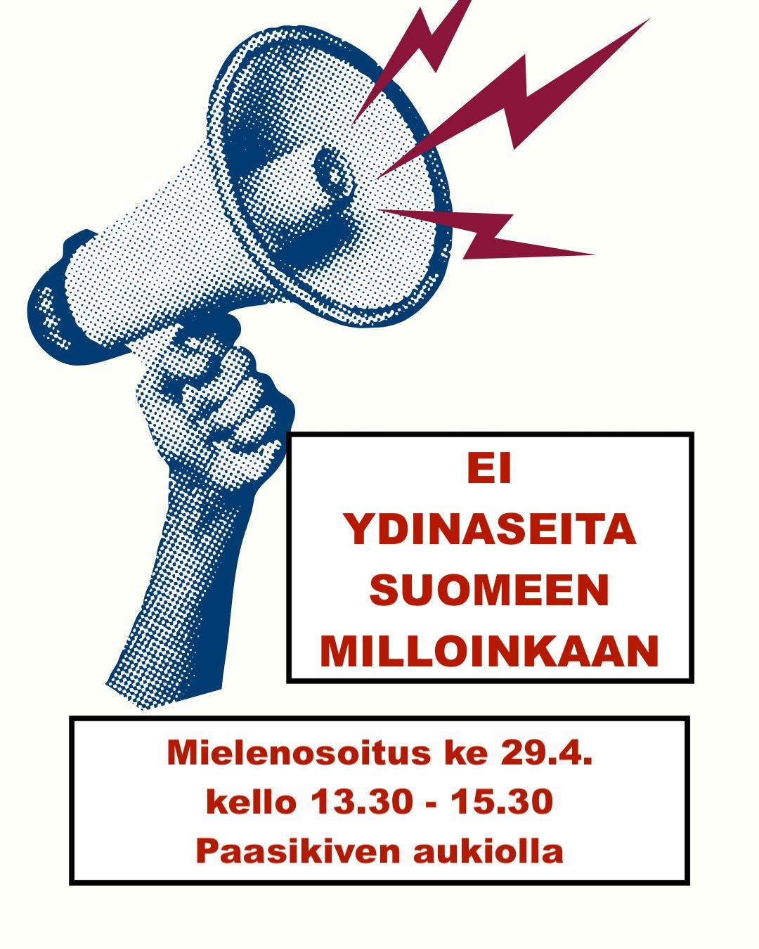 29.4. Ei ydinaseita Suomeen -mielenosoitus • Helsinki