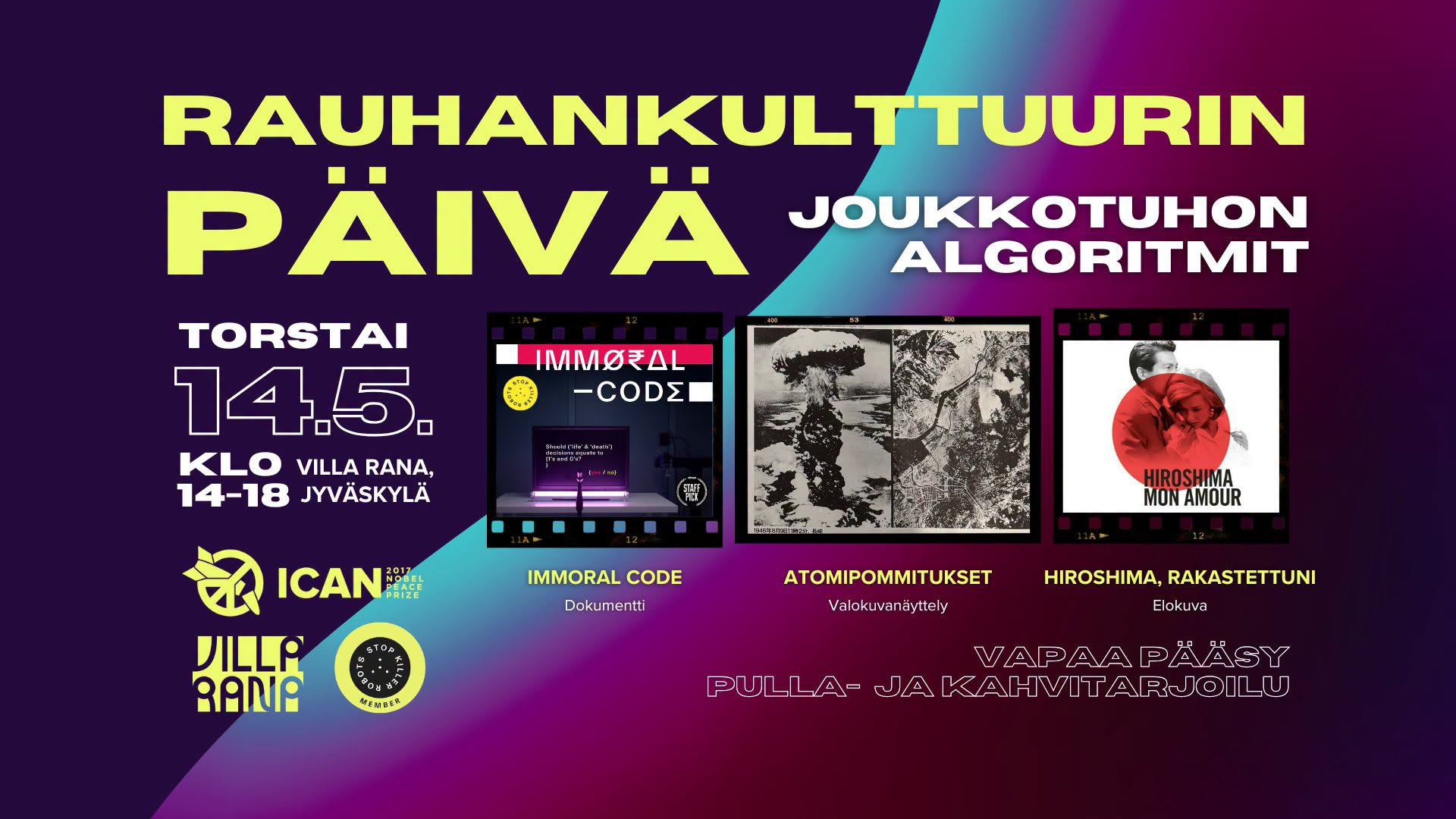 Helatorstaina 14.5.2026 kello 14–18 Kulttuuritalo Villa Ranassa nähdään ja kuullaan niin autonomisista aseista kuin päivänpolttavista ydinaseista. Lisäksi tarjoamme osallistujille kahvia ja pullaa, ja Villa Ranan ravintola on auki tapahtuman ajan.